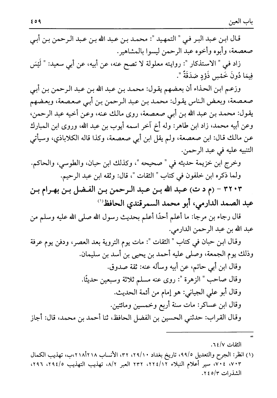 ٣٢٠٣ - (م د ت) عبد اللَّه بن عبد الرحمن بن الفضل بن بهرام بن عبد الصمد الدارمي، أبو محمد السمرقندي الحافظ (¬١)