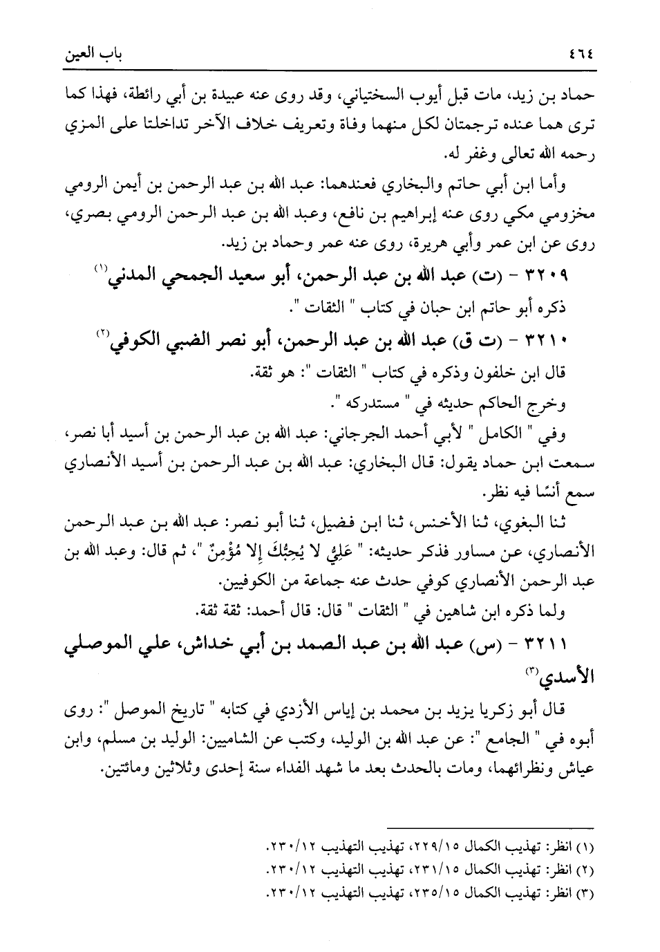 (¬٣) انظر: تهذيب الكمال ٥/ ٢٣٥، تهذيب التهذيب ١٢/ ٢٣٠.