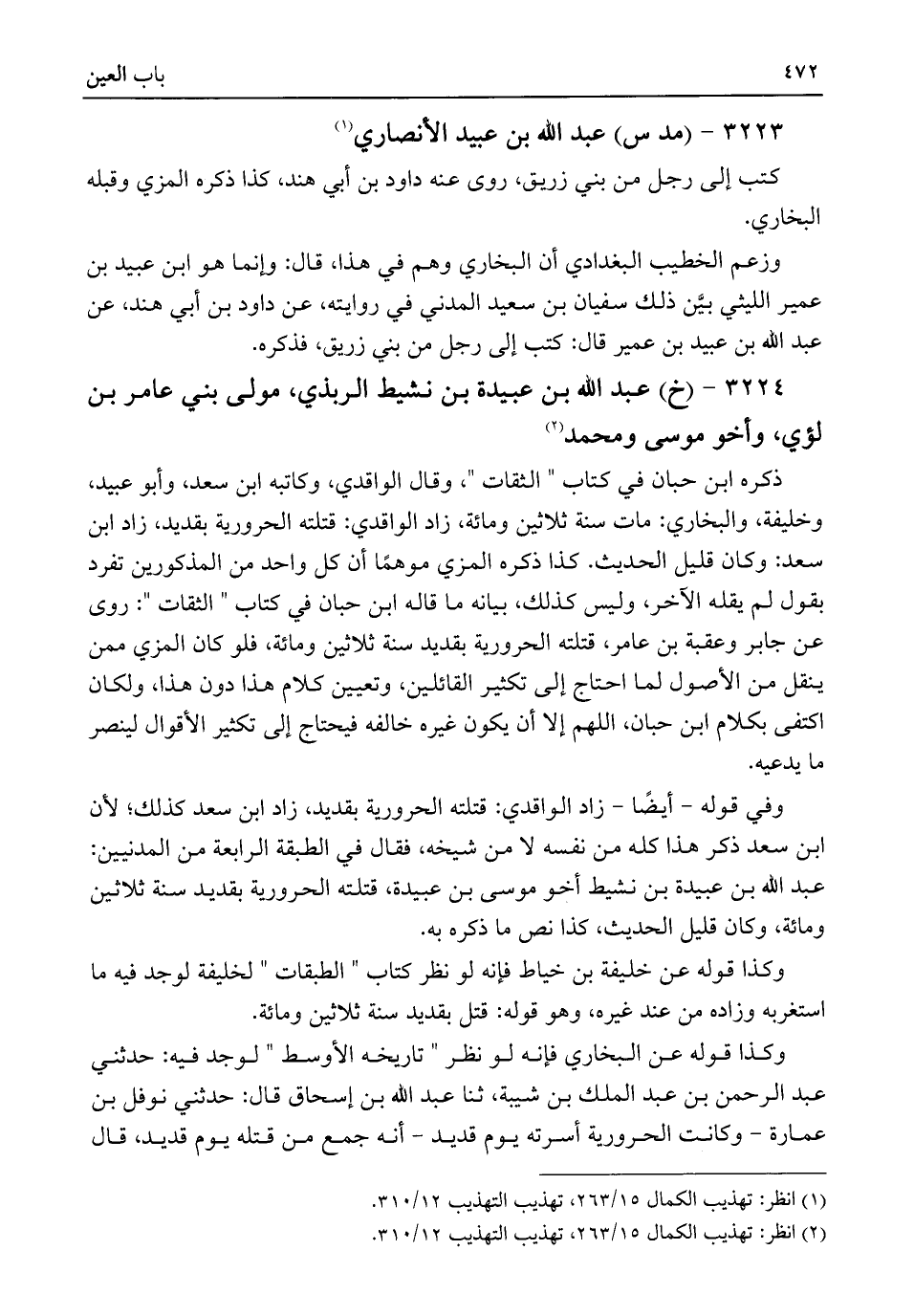 وكذا قوله عن خليفة بن خياط فإنه لو نظر كتاب "الطبقات" لخليفة لوجد فيه ما استغربه وزاده من عند غيره، وهو قوله: قتل بقديد سنة ثلاثين ومائة.