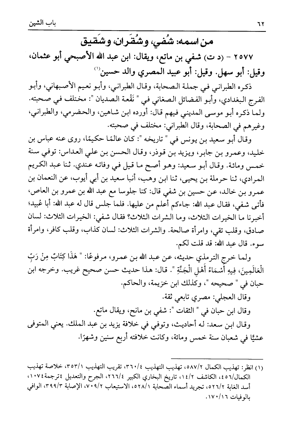 ٢٥٧٧ - (د ت) شفي بن ماتع، ويقال: ابن عبد اللَّه الأصبحي أبو عثمان، وقيل: أبو سهل. وقيل: أبو عبيد المصري والد حسين (¬١)