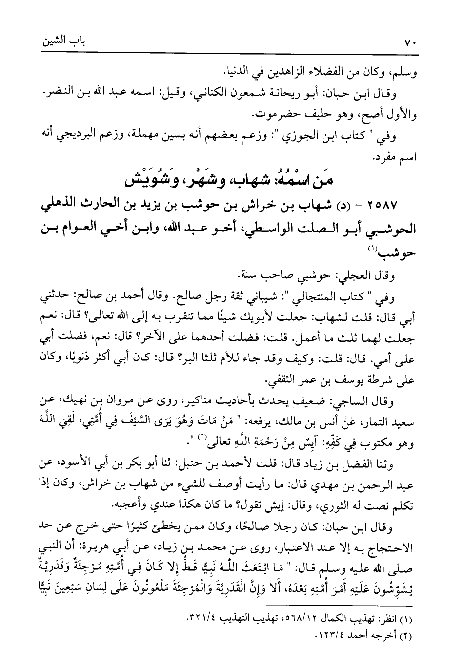 مَن اسْمُهُ: شهاب، وشَهْر، وَشُوَيْش