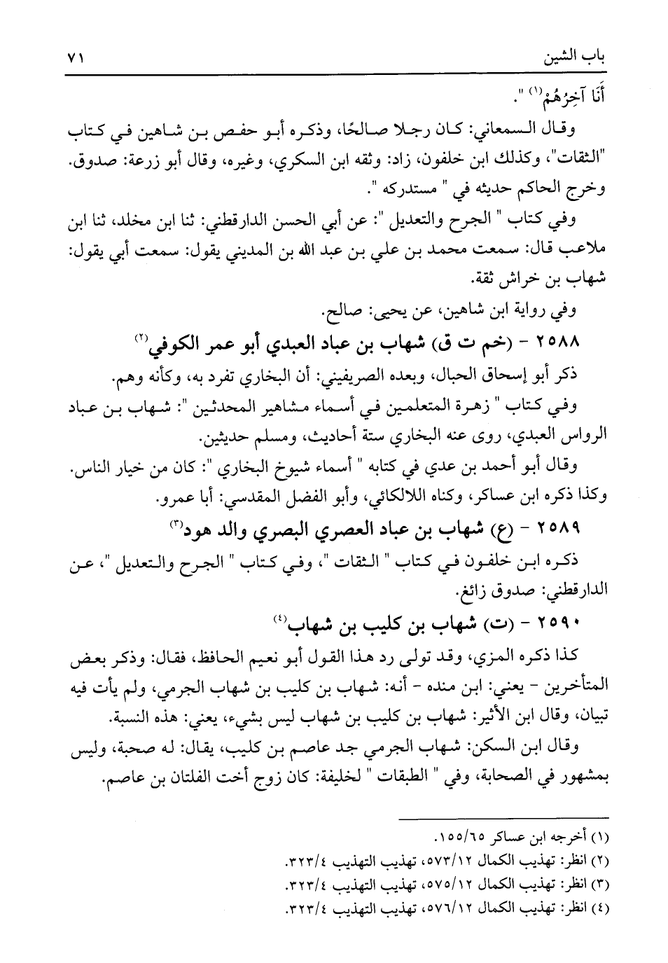 ٢٥٨٨ - (خم ت ق) شهاب بن عباد العبدي أبو عمر الكوفي (¬٢)