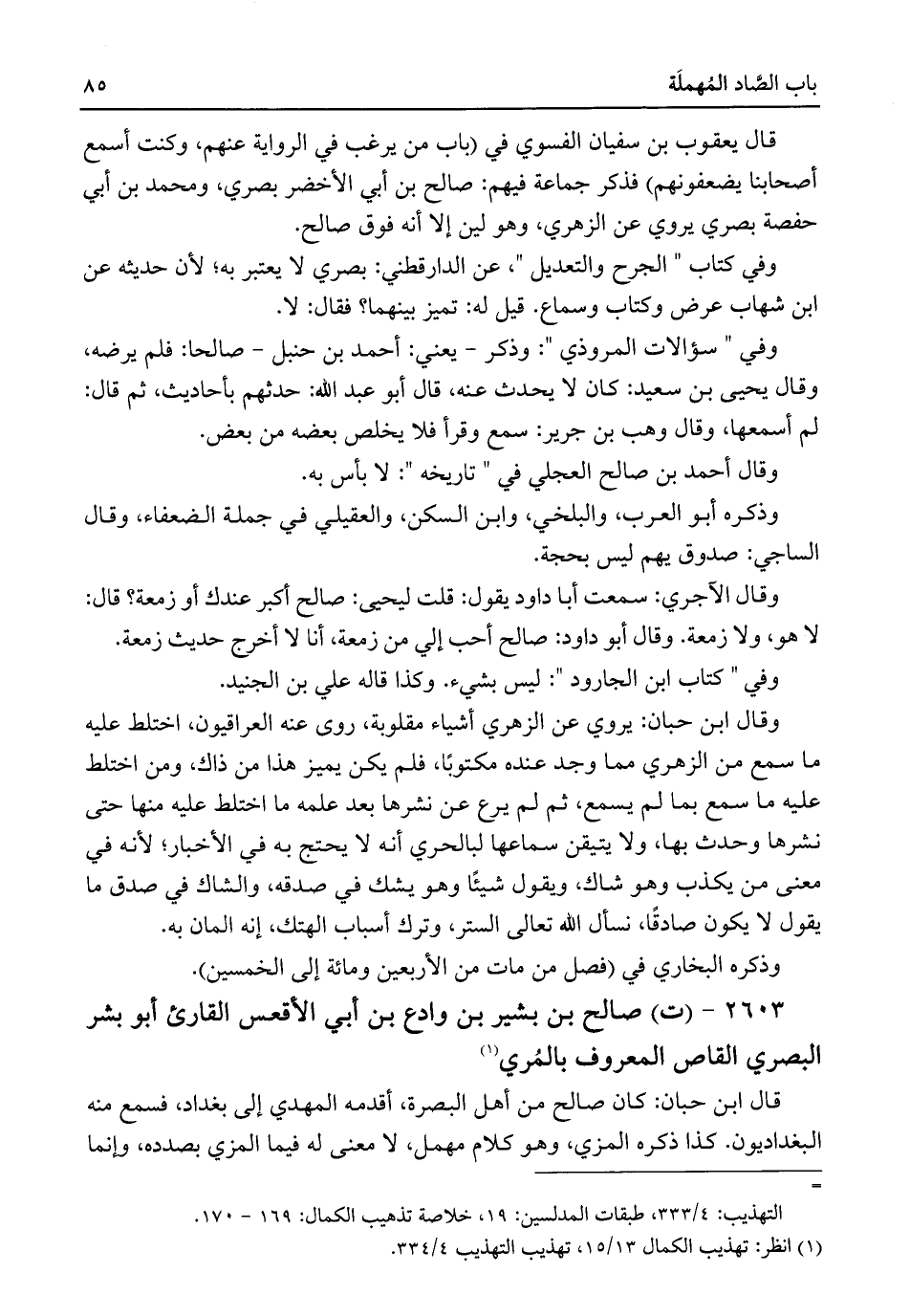 ٢٦٠٣ - (ت) صالح بن بشير بن وادع بن أبي الأقعس القارئ أبو بشر البصري القاص المعروف بالمُري (¬١)