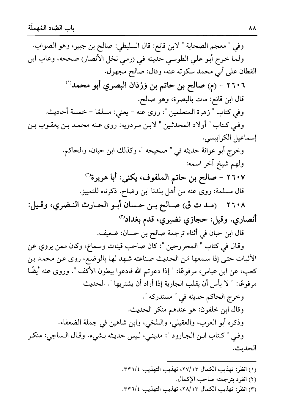 ٢٦٠٧ - صالحى بن حاتم الملفوف، يكنى: أبا هريرة (¬٢)