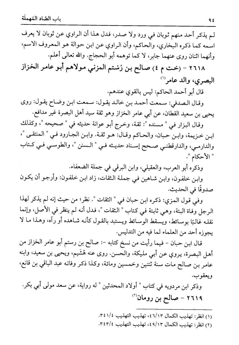 ٢٦١٨ - (خت م ٤) صالح بن رُسْتم المزني مولاهم أبو عامر الخزاز البصري، والد عامر (¬١)