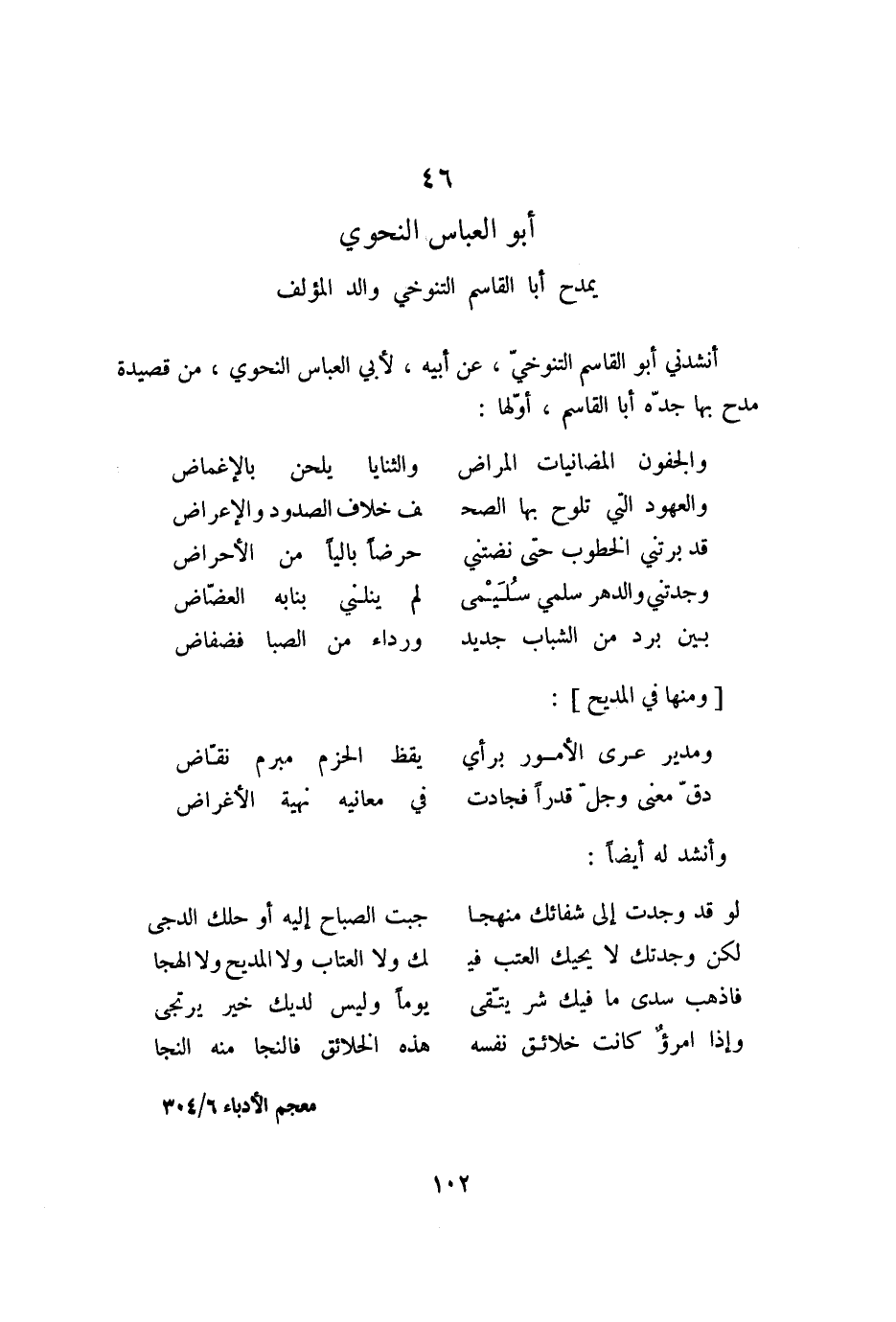 46 أبو العباس النحوي يمدح أبا القاسم التنوخي والد المؤلف