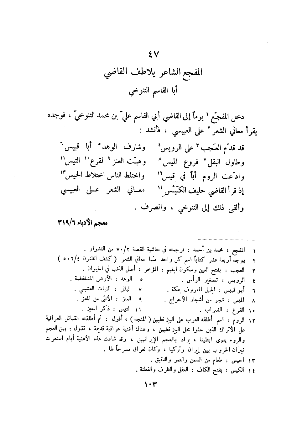 47 المفجع الشاعر يلاطف القاضي أبا القاسم التنوخي