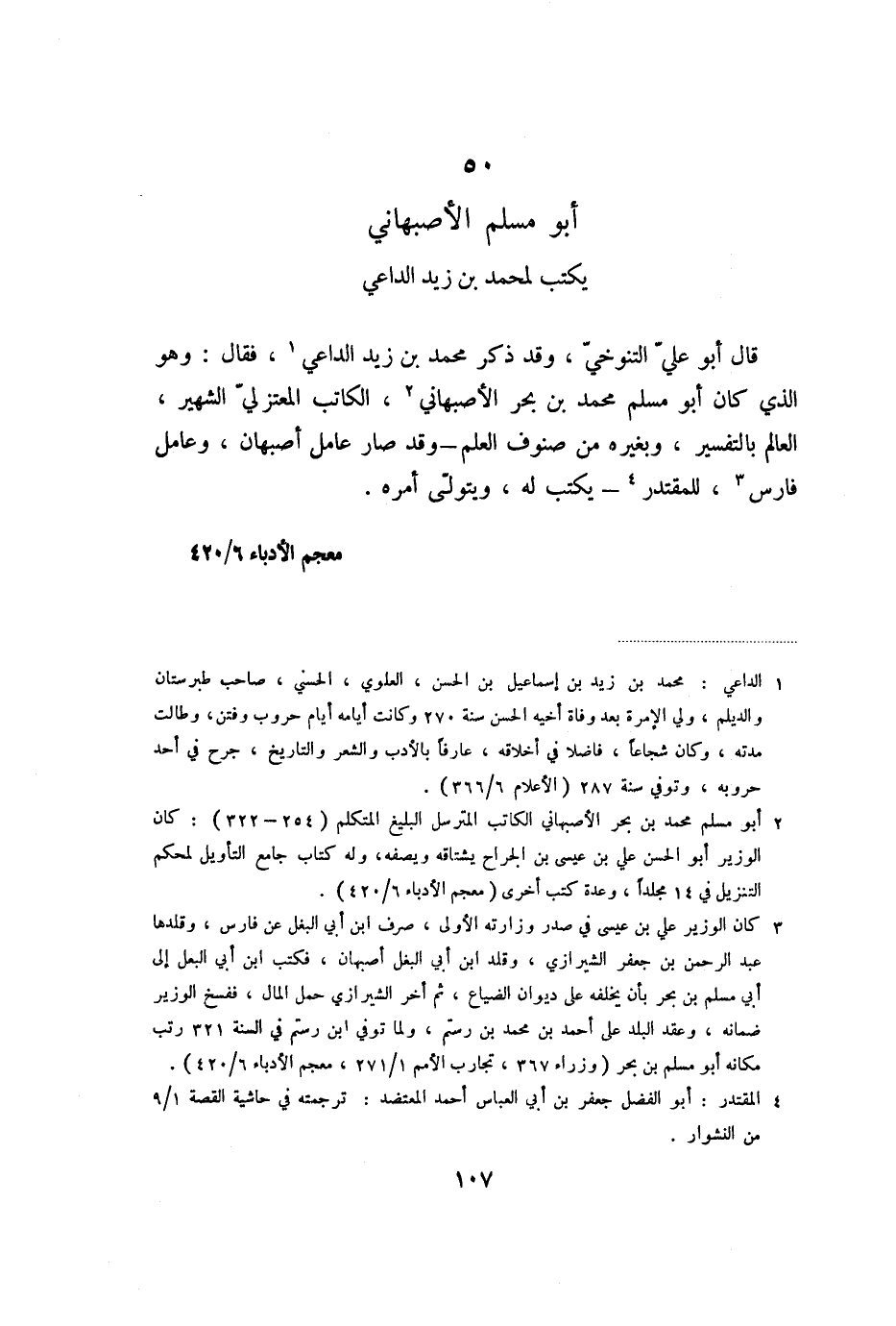 50 أبو مسلم الأصبهاني يكتب لمحمد بن زيد الداعي