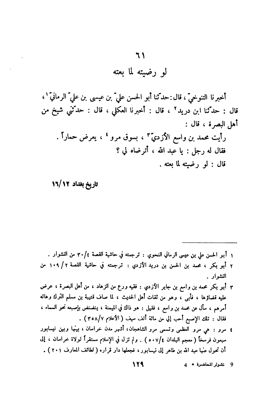 كتاب نشوار المحاضرة وأخبار المذاكرة (اسم الجزء: 4)