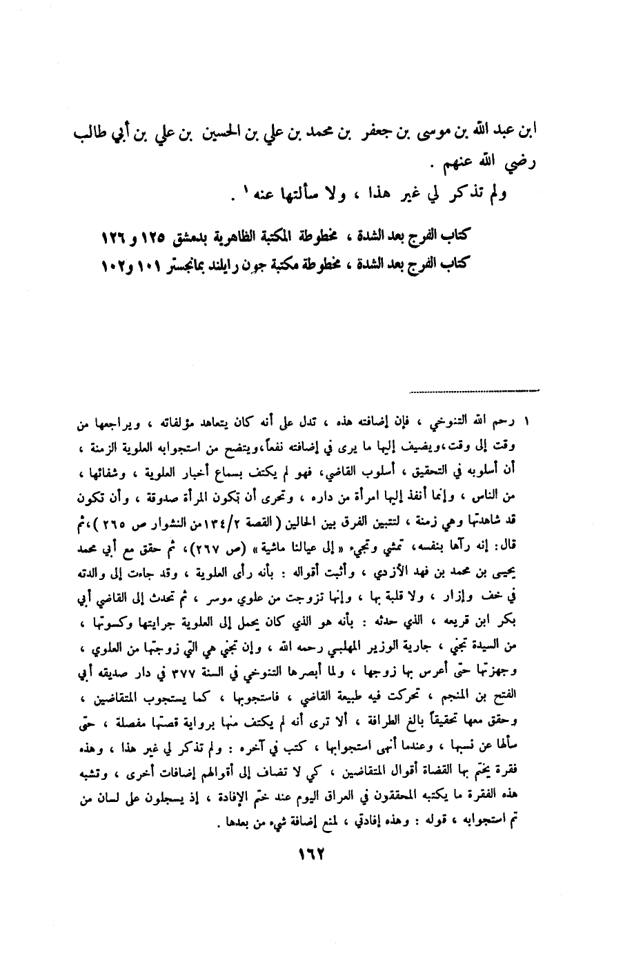 كتاب الفرج بعد الشدة، مخطوطة المكتبة الظاهرية بدمشق 125 و 126 كتاب الفرج بعد الشدة، مخطوطة مكتبة جون رايلند بمانجستر 101 و 102