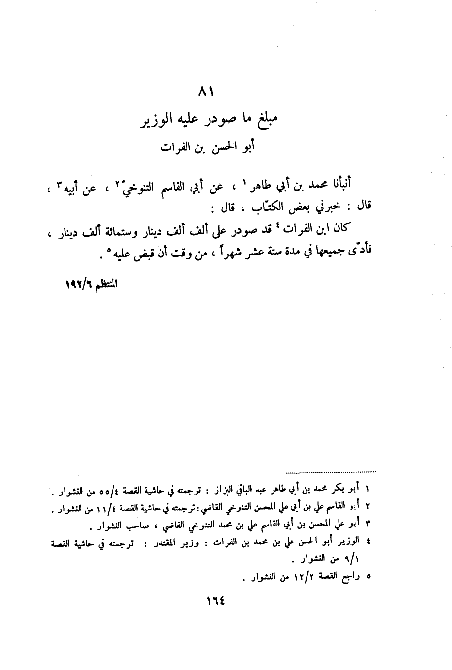 81 مبلغ ما صودر عليه الوزير أبو الحسن بن الفرات