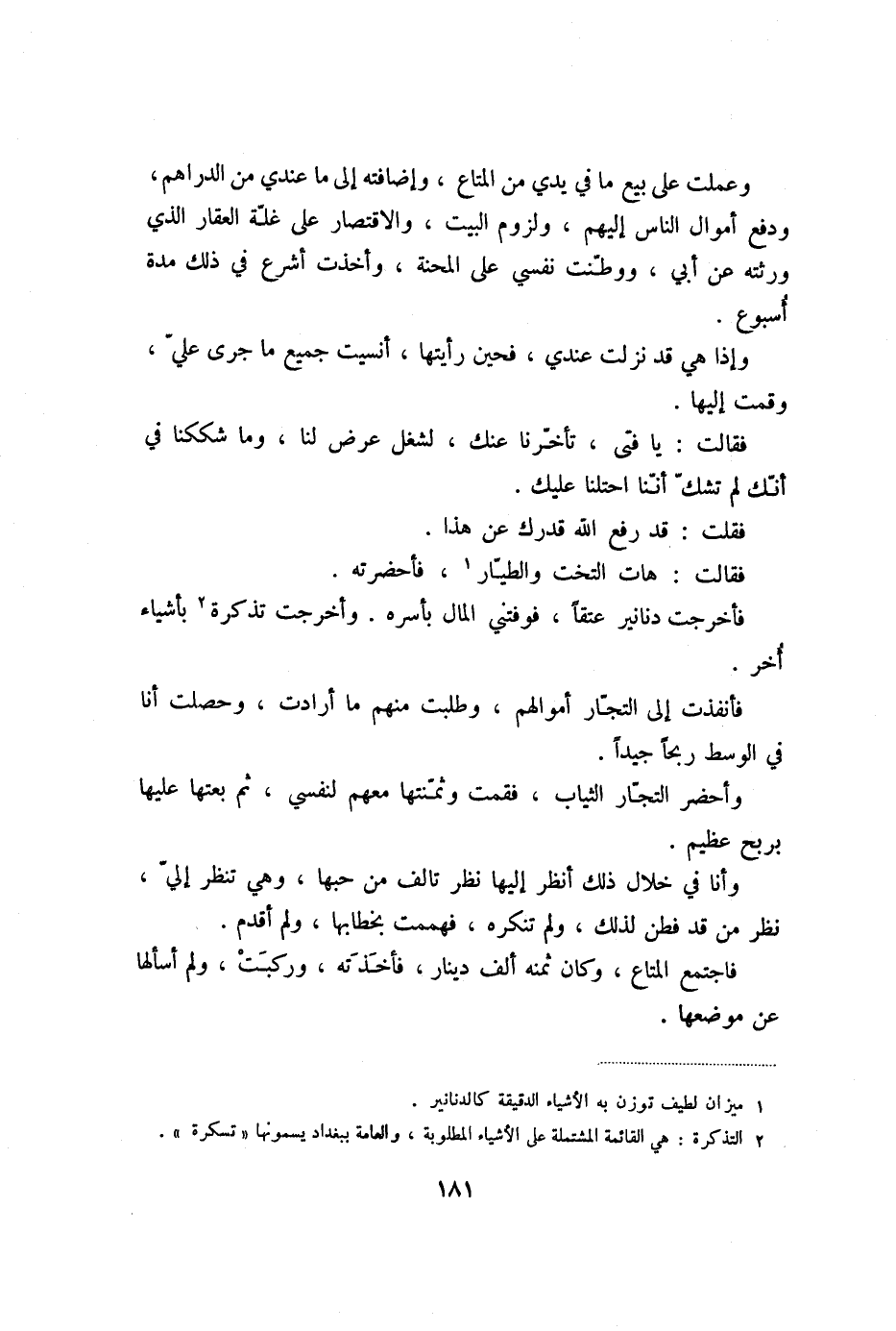 فأخرجت دنانير عتقا، فوفتني المال بأسره. وأخرجت تذكرة «2» بأشياء أخر.