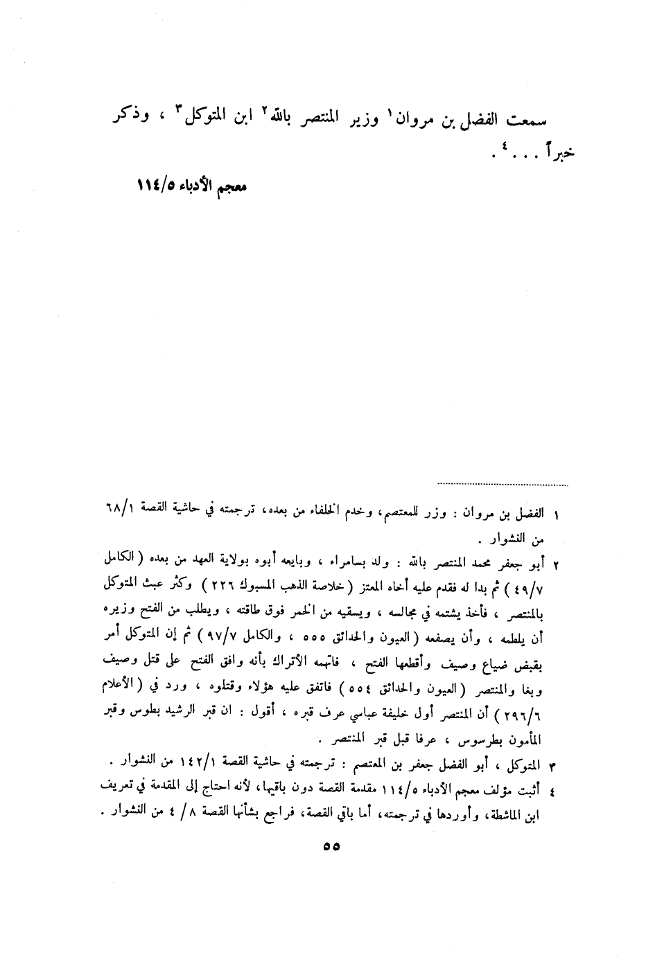 سمعت الفضل بن مروان «1» وزير المنتصر بالله «2» ابن المتوكل «3» ، وذكر خبرا ... «4» .