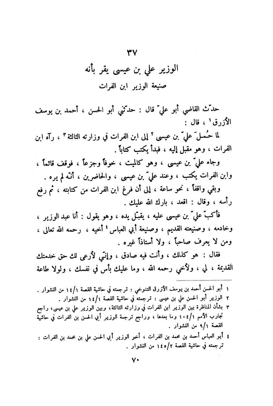 37 الوزير علي بن عيسى يقر بأن صنيعة الوزير ابن الفرات
