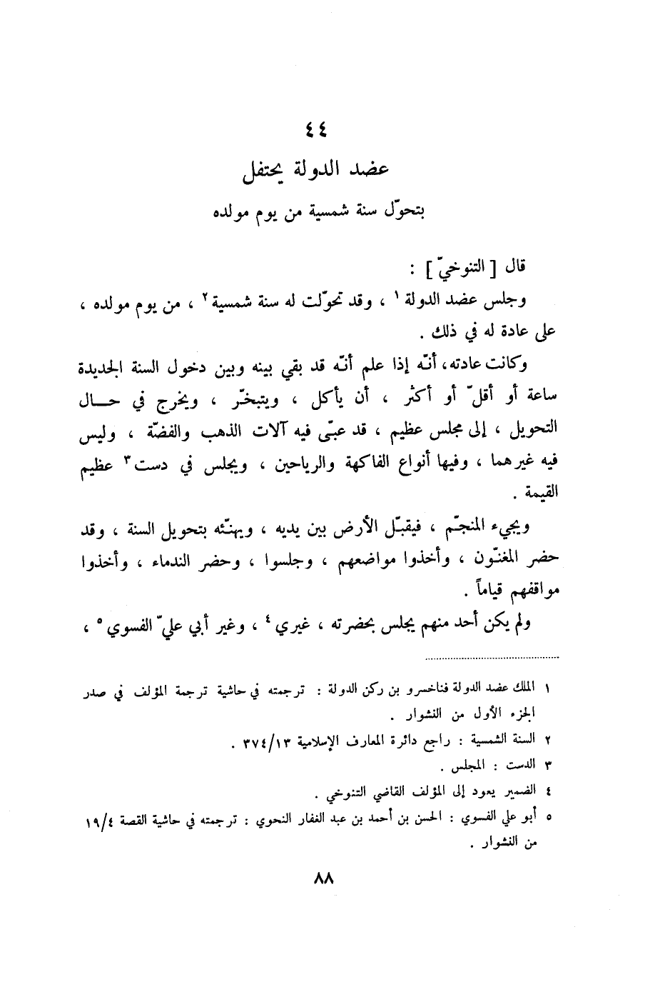 44 عضد الدولة يحتفل بتحوّل سنة شمسية من يوم مولده