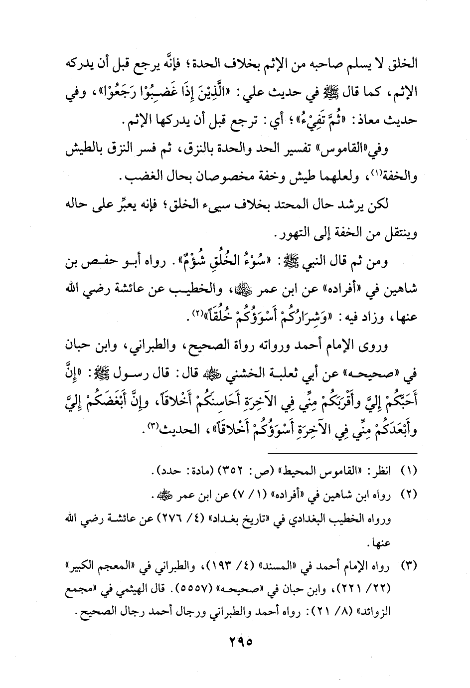 ومن ثم قال النبي - صلى الله عليه وسلم -: "سُوْءُ الخُلُقِ شُؤْمٌ". رواه أبو حفص بن شاهين في "أفراده" عن ابن عمر - رضي الله عنهما -، والخطيب عن عائشة رضي الله عنها، وزاد فيه: "وَشِرَارُكُمْ أَسْوَؤُكُمْ خُلُقًا" (¬2).