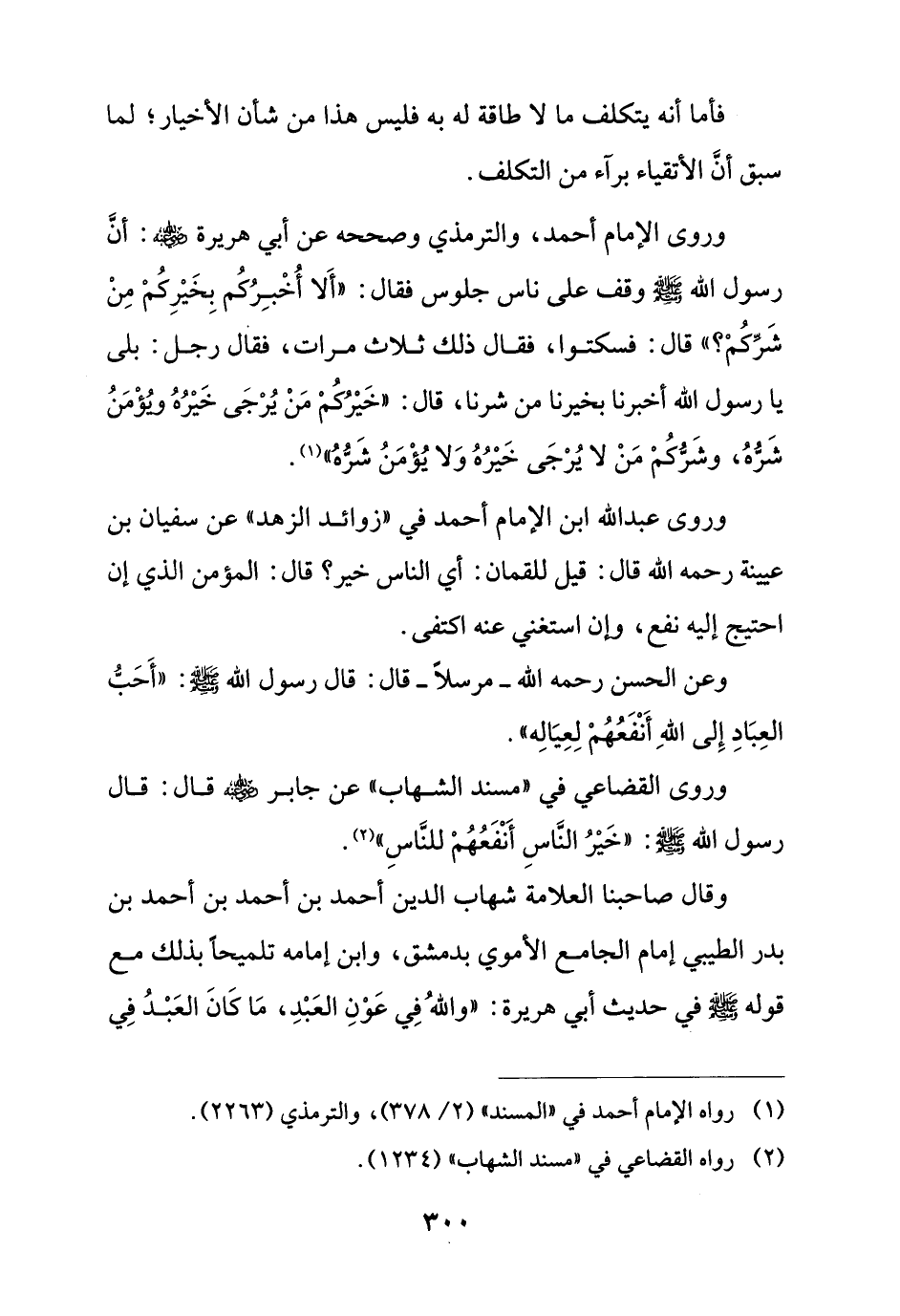 وروى القضاعي في "مسند الشهاب" عن جابر - رضي الله عنه - قال: قال رسول الله - صلى الله عليه وسلم -: "خَيْرُ النَّاسِ أَنْفَعُهُمْ للنَّاسِ" (¬2).