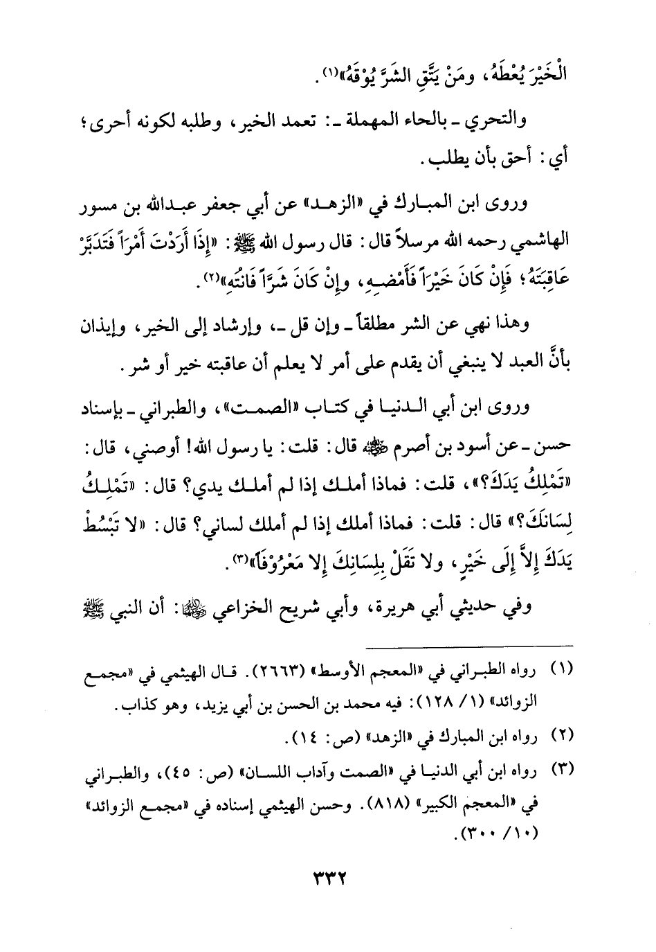 (¬3) رواه ابن أبي الدنيا في "الصمت وآداب اللسان" (ص: 45)، والطبراني في "المعجم الكبير" (818). وحسن الهيثمي إسناده في "مجمع الزوائد" (10/ 300).