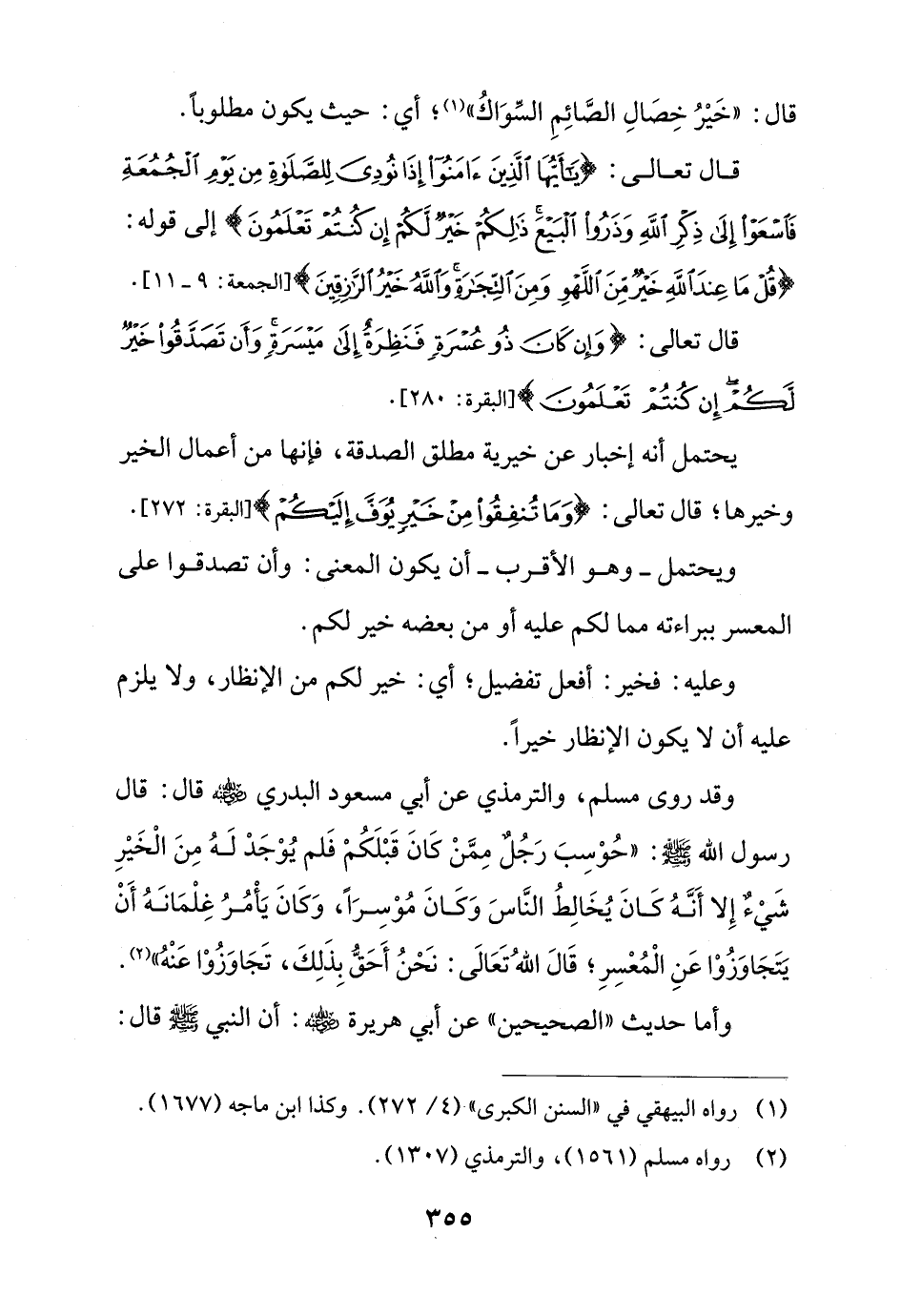 قال تعالى: {وَإِنْ كَانَ ذُو عُسْرَةٍ فَنَظِرَةٌ إِلَى مَيْسَرَةٍ وَأَنْ تَصَدَّقُوا خَيْرٌ لَكُمْ إِنْ كُنْتُمْ تَعْلَمُونَ} [البقرة: 280].