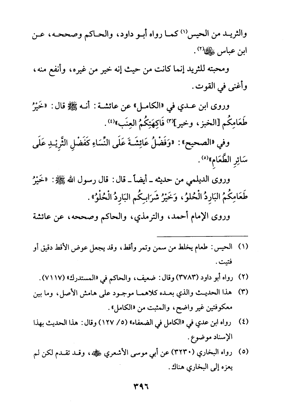 وفي "الصحيح": "وَفَضْلُ عَائِشَةَ عَلَى النِّسَاءِ كَفَضْلِ الثَّرِيْدِ عَلَى سَائِرِ الطَّعَامِ" (¬5).