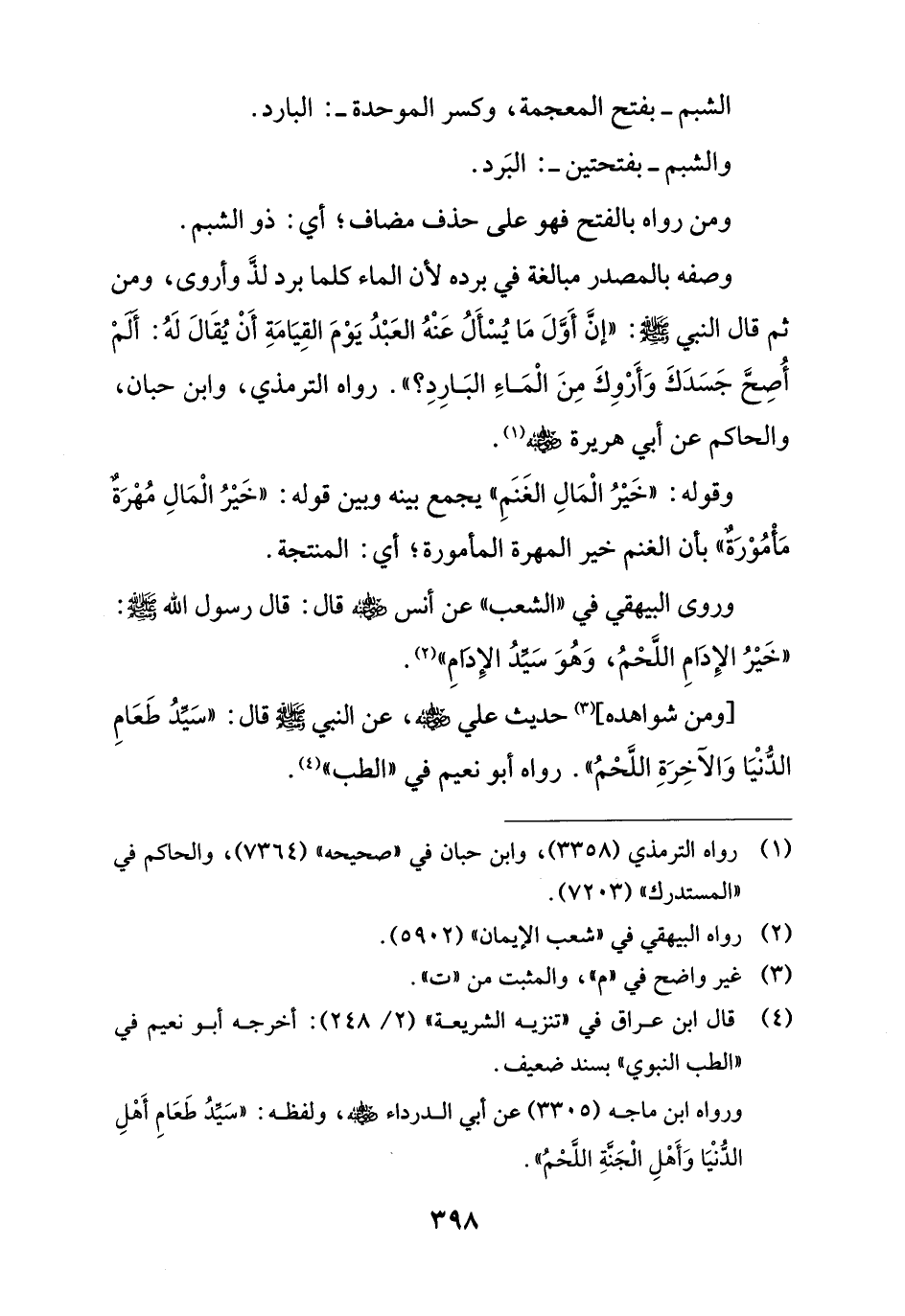 [ومن شواهده] (¬3) حديث علي - رضي الله عنه -، عن النبي - صلى الله عليه وسلم - قال: "سَيِّدُ طَعَامِ الدُّنْيَا وَالآخِرَةِ اللَّحْمُ". رواه أبو نعيم في "الطب" (¬4).