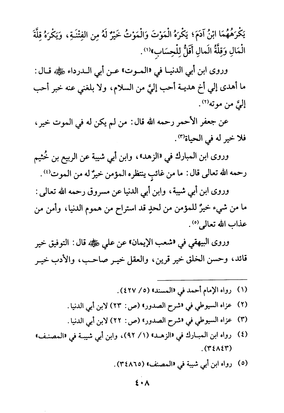 وروى ابن أبي الدنيا في "الموت" عن أبي الدرداء - رضي الله عنه - قال: ما أهدى إلي أخ هدية أحب إليَّ من السلام، ولا بلغني عنه خبر أحب إليَّ من موته (¬2).