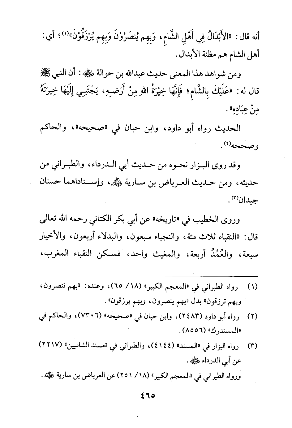 أنه قال: "الأَبْدَالُ في أَهْلِ الشَّامِ، وَبِهِم يُنصَرُوْنَ وَبِهِم يُرْزَقُوْنَ" (¬1)؛ أي: أهل الشام هم مظنة الأبدال.