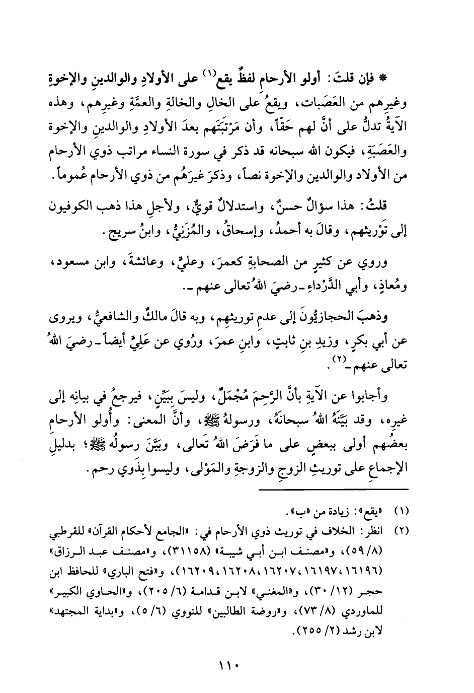 قلتُ: هذا سؤالٌ حسنٌ، واستدلالٌ قوي، ولأجلِ هذا ذهب الكوفيون إلى تَوْريثهم، وقالَ به أحمدُ، وإسحاقُ، والمُزَنيُّ، وابنُ سريج.