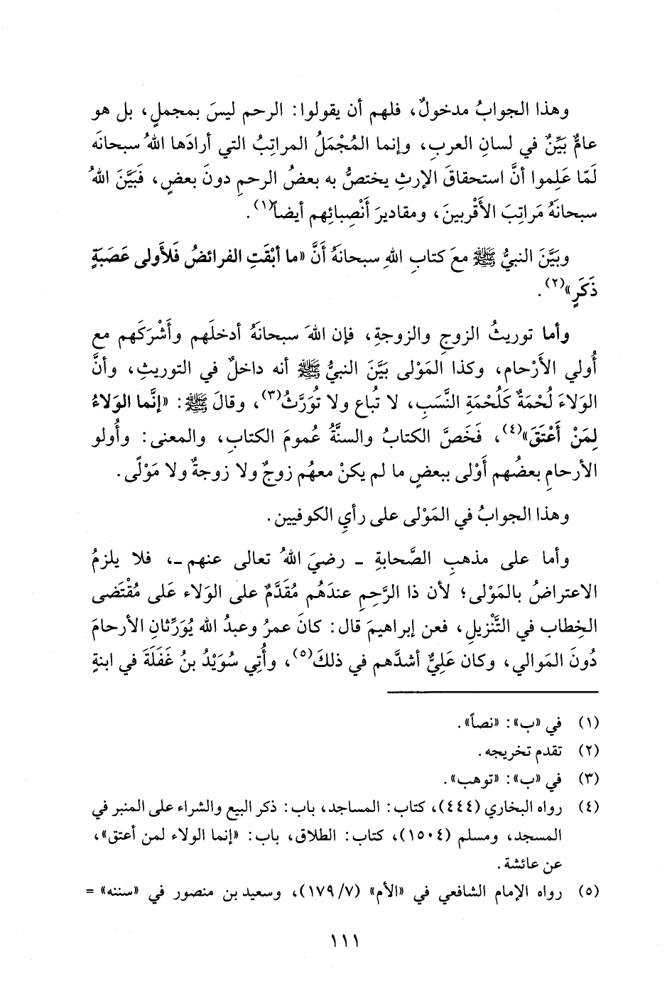 وبَيَّنَ النبيُّ - صلى الله عليه وسلم - معَ كتابِ اللهِ سبحانه أَنَّ "ما أبْقَتِ الفرائضُ فَلأَولى عَصَبةٍ ذَكرٍ" (¬2).