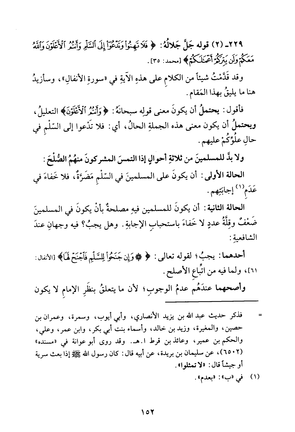 229 - (2) قوله جَلَّ جَلالُهُ: {فَلَا تَهِنُوا وَتَدْعُوا إِلَى السَّلْمِ وَأَنْتُمُ الْأَعْلَوْنَ وَاللَّهُ مَعَكُمْ وَلَنْ يَتِرَكُمْ أَعْمَالَكُمْ} [محمد: 35].