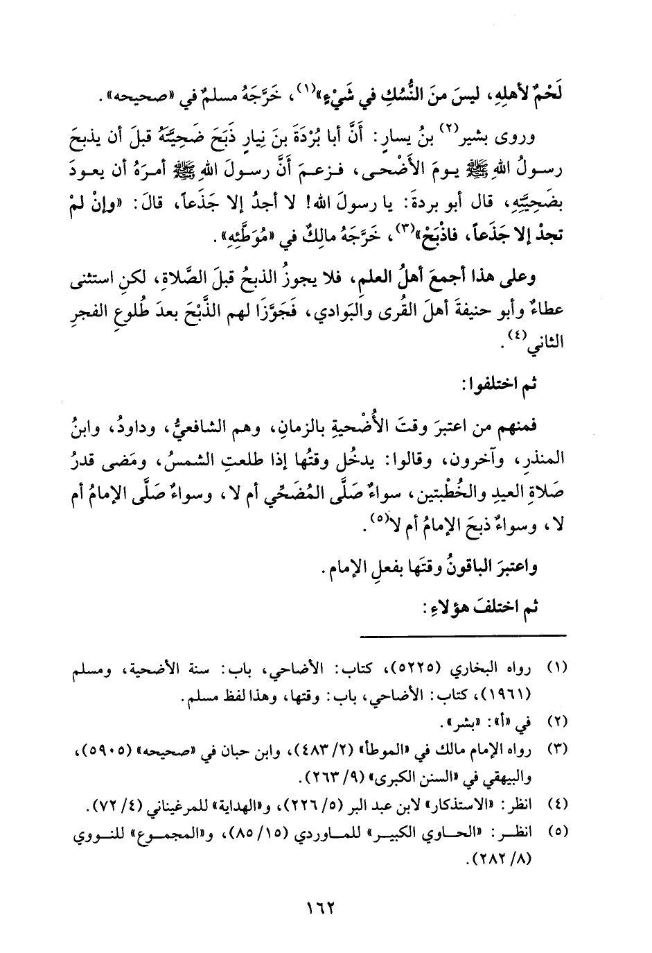 (¬4) انظر: "الاستذكار" لابن عبد البر (5/ 226)، و "الهداية" للمرغيناني (4/ 72).
