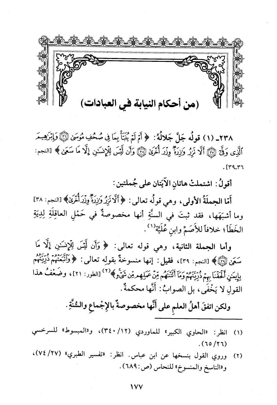 238 - (1) قولُه جَلَّ جَلالُهُ: {أَمْ لَمْ يُنَبَّأْ بِمَا فِي صُحُفِ مُوسَى (36) وَإِبْرَاهِيمَ الَّذِي وَفَّى (37) أَلَّا تَزِرُ وَازِرَةٌ وِزْرَ أُخْرَى (38) وَأَنْ لَيْسَ لِلْإِنْسَانِ إِلَّا مَا سَعَى} [النجم: 36 - 39].