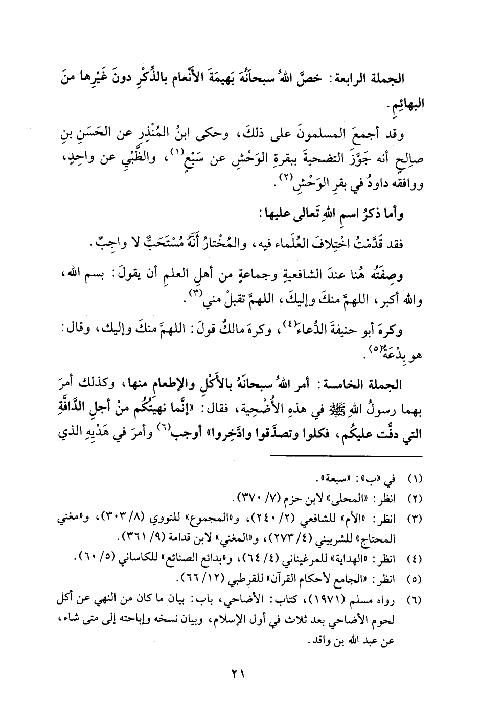 (¬6) رواه مسلم (1971)، كتاب: الأضاحي، باب: بيان ما كان من النهي عن أكل لحوم الأضاحي بعد ثلاث في أول الإسلام، وبيان نسخه وإباحته إلى متى شاء، عن عبد الله بن واقد.