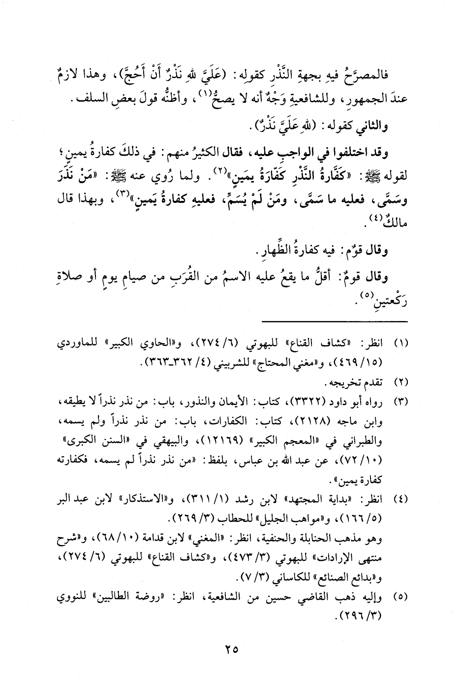 (¬3) رواه أبو داود (3322)، كتاب: الأيمان والنذور، باب: من نذر نذراً لا يطيقه، وابن ماجه (2128)، كتاب: الكفارات، باب: من نذر نذراً ولم يسمه، والطبراني في "المعجم الكبير" (12169)، والبيهقي في "السنن الكبرى" (10/ 72)، عن عبد الله بن عباس، بلفظ: "من نذر نذراً لم يسمه، فكفارته كفارة يمين".