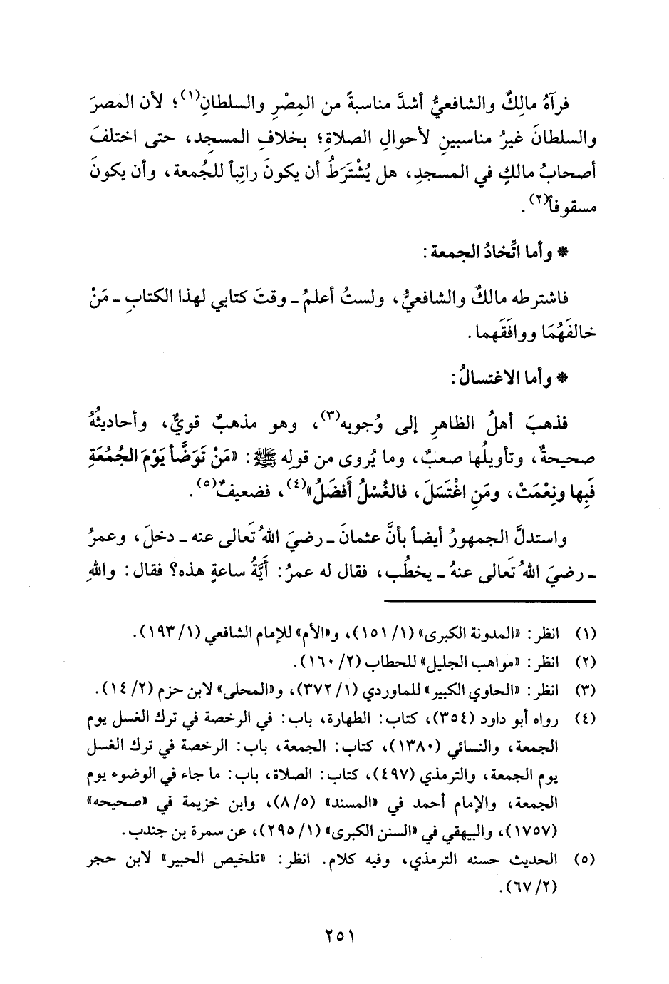 فذهبَ أهلُ الظاهرِ إلى وُجوبه (¬3)، وهو مذهبٌ قويٌّ، وأحاديثُهُ صحيحةٌ، وتأويلُها صعبٌ، وما يُروى من قوله - صلى الله عليه وسلم -: "مَنْ تَوَضَّأ يَوْمَ الجُمُعَةِ فَبِها ونِعْمَتْ، ومَنِ اغْتَسَلَ، فالغُسْلُ أَفضَلُ" (¬4)، فضعيفٌ (¬5).