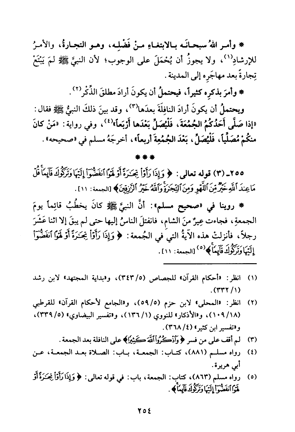 255 - (3) قوله تعالى: {وَإِذَا رَأَوْا تِجَارَةً أَوْ لَهْوًا انْفَضُّوا إِلَيْهَا وَتَرَكُوكَ قَائِمًا قُلْ مَا عِنْدَ اللَّهِ خَيْرٌ مِنَ اللَّهْوِ وَمِنَ التِّجَارَةِ وَاللَّهُ خَيْرُ الرَّازِقِينَ} [الجمعة: 11].