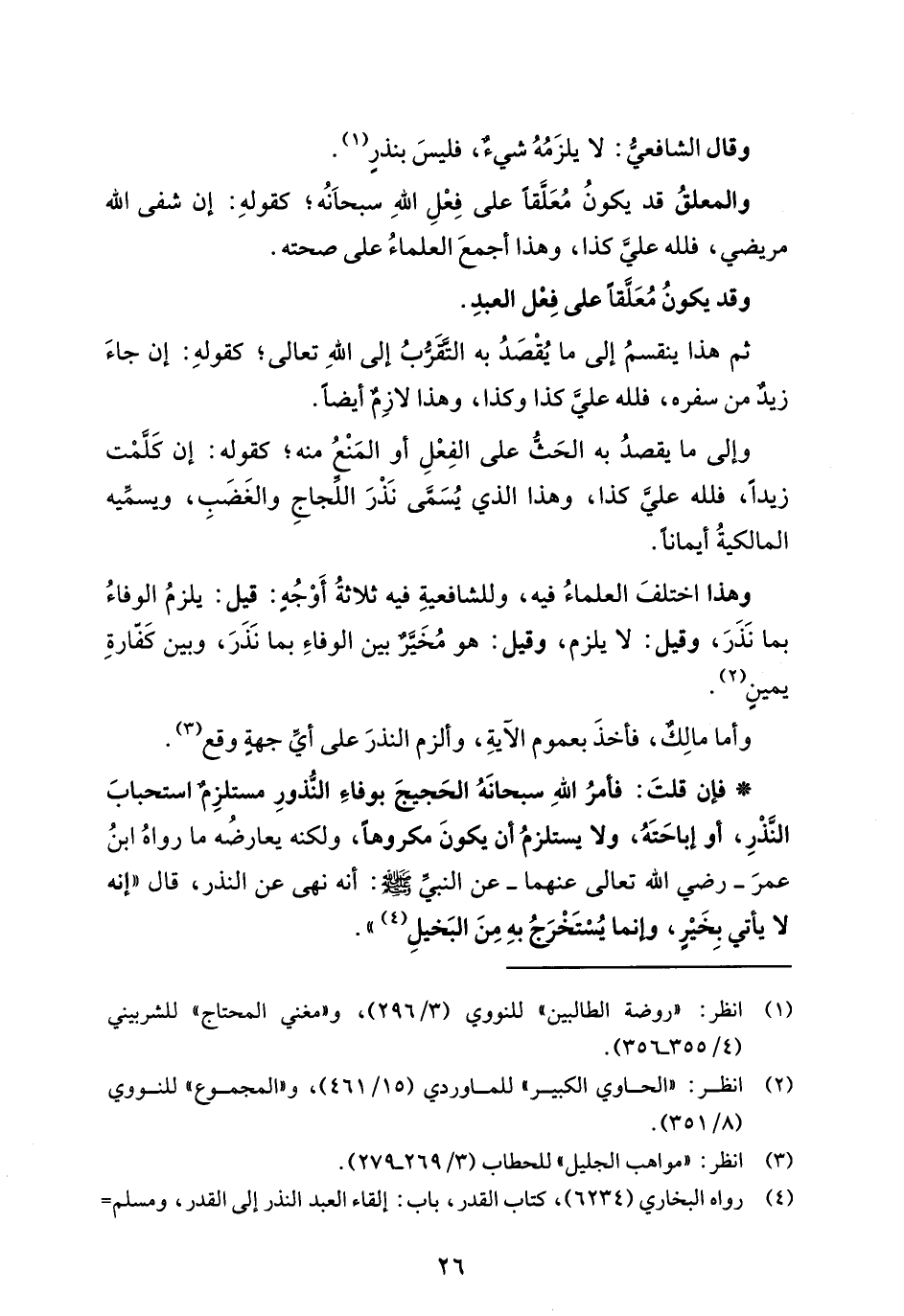 (¬4) رواه البخاري (6234)، كتاب القدر، باب: إلقاء العبد النذر إلى القدر، ومسلم =