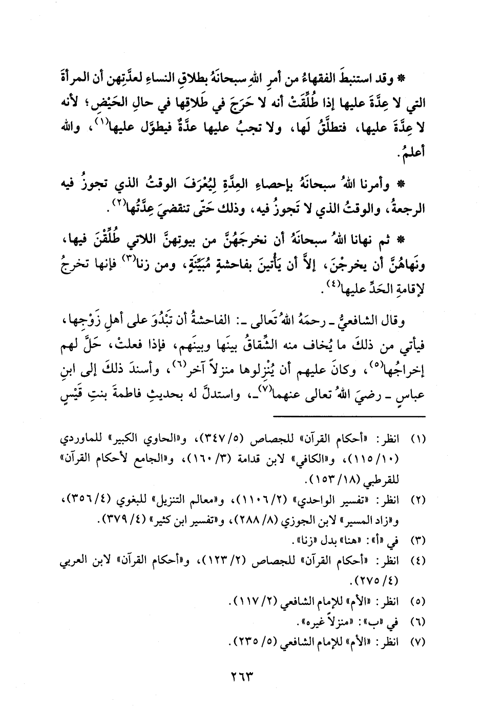 * ثم نهانا اللهُ سبحانَهُ أن نخرجَهُنَّ من بيوتهنَّ اللاتي طُلِّقْنَ فيها، ونَهاهُنَّ أن يخرجْنَ، إلَّا أن يَأتينَ بفاحشةٍ مُبيِّنَةٍ، ومن زنا (¬3) فإنَّها تخرجُ لإقامةِ الحَدِّ عليها (¬4).