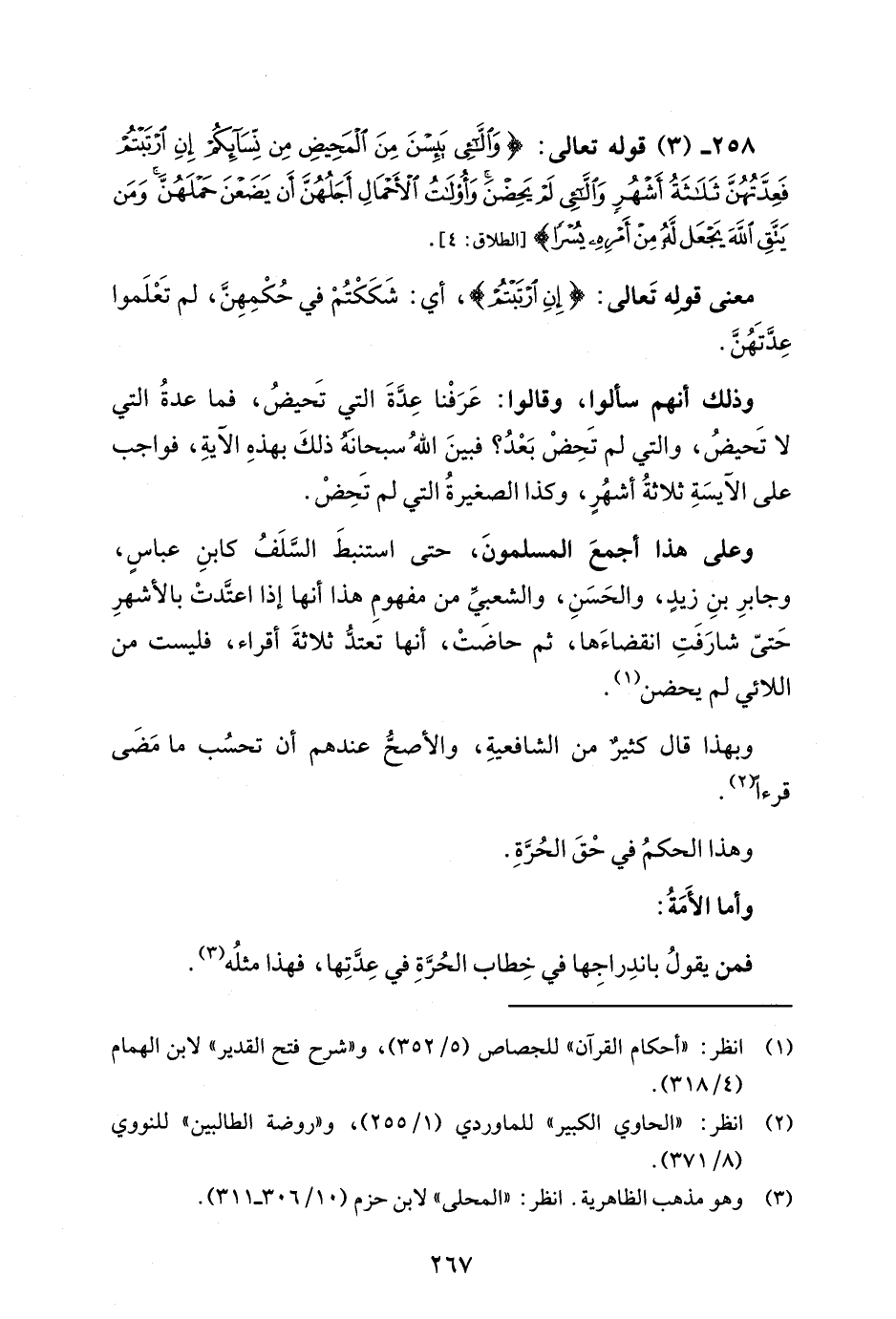 258 - (3) قوله تعالى: {وَاللَّائِي يَئِسْنَ مِنَ الْمَحِيضِ مِنْ نِسَائِكُمْ إِنِ ارْتَبْتُمْ فَعِدَّتُهُنَّ ثَلَاثَةُ أَشْهُرٍ وَاللَّائِي لَمْ يَحِضْنَ وَأُولَاتُ الْأَحْمَالِ أَجَلُهُنَّ أَنْ يَضَعْنَ حَمْلَهُنَّ وَمَنْ يَتَّقِ اللَّهَ يَجْعَلْ لَهُ مِنْ أَمْرِهِ يُسْرًا} [الطلاق: 4].