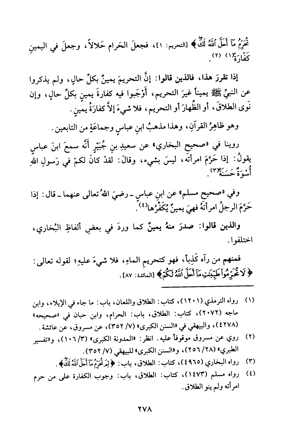 (¬4) رواه مسلم (1473)، كتاب: الطلاق، باب: وجوب الكفارة على من حرم امرأته ولم ينو الطلاق.