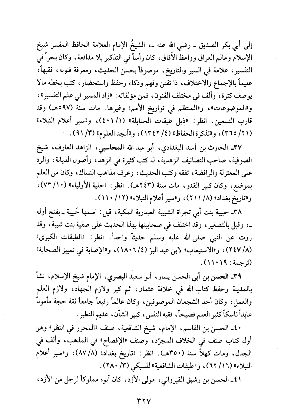 37 - الحارث بن أسد البغدادي، أبو عبد الله المحاسبي، الزاهد العارف، شيخ الصوفية، صاحب التصانيف الزهدية، له كتب كثيرة في الزهد، وأصول الديانة، والرد على المعتزلة والرافضة، تفقه وكتب الحديث، وعرف مذاهب النساك، وكان من العلم بموضع، وكان كبير القدر، مات سنة (243 هـ). انظر: "حلية الأولياء" (10/ 73)، و"تاريخ بغداد" (8/ 211)، و"سير أعلام النبلاء" (12/ 110).