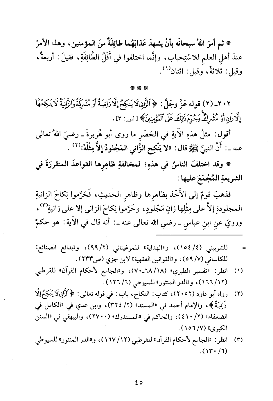 202 - (2) قوله عَزَّ وجَلَّ: {الزَّانِي لَا يَنْكِحُ إِلَّا زَانِيَةً أَوْ مُشْرِكَةً وَالزَّانِيَةُ لَا يَنْكِحُهَا إِلَّا زَانٍ أَوْ مُشْرِكٌ وَحُرِّمَ ذَلِكَ عَلَى الْمُؤْمِنِينَ} [النور: 3].