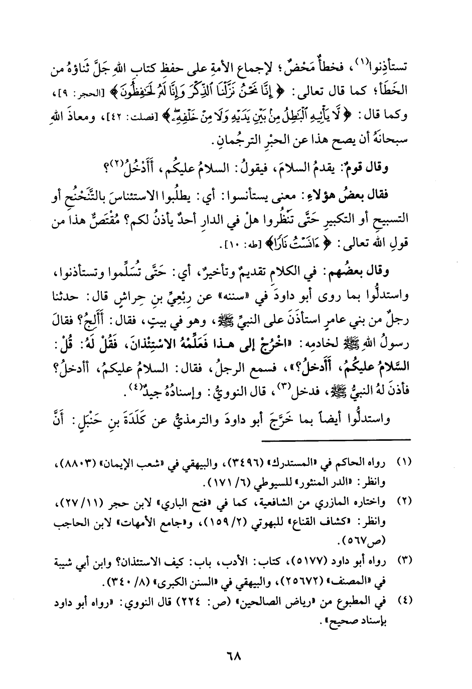 (¬3) رواه أبو داود (5177)، كتاب: الأدب، باب: كيف الاستئذان؟ وابن أبي شيبة في "المصنف" (25672)، والبيهقي في "السنن الكبرى" (8/ 340).