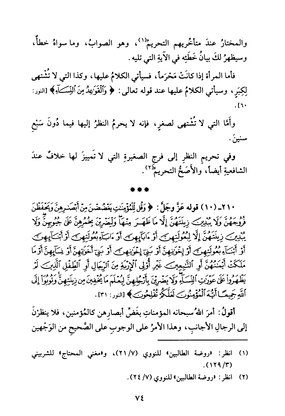 فأما المرأة إذا كانَتْ مَحْرَماً، فسيأتي الكلامُ عليها، وكذا التي لا تشتهى لِكِبَرٍ، وسيأتي الكلامُ عليها عند قوله تعالى: {وَالْقَوَاعِدُ مِنَ النِّسَاءِ} [النور: 60].