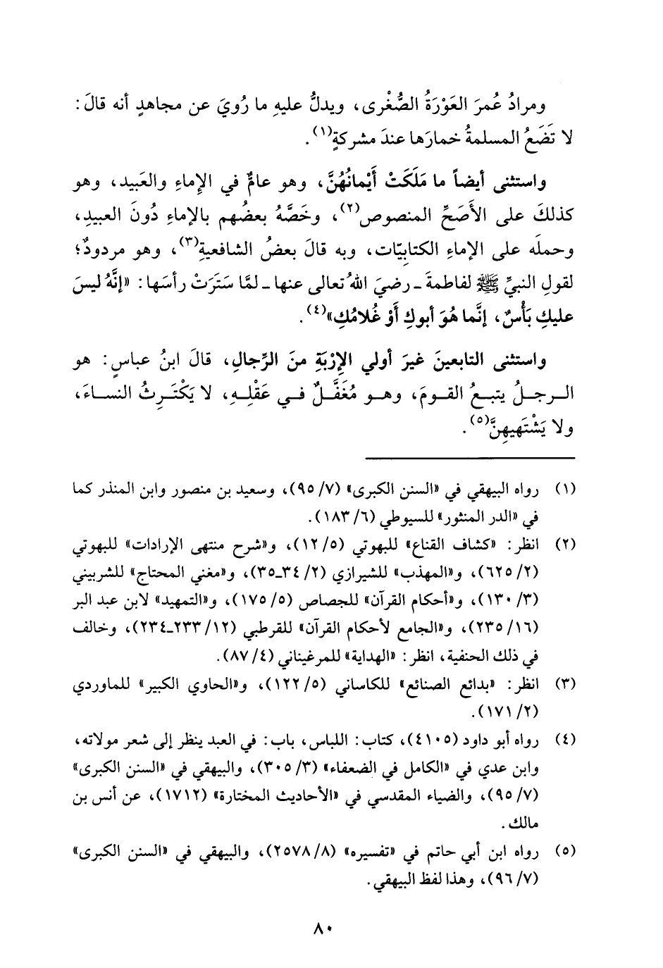 واستثنى أيضاً ما مَلَكَتْ أَيْمانُهُن، وهو عامٌّ في الإِماءِ والعَبيد، وهو كذلكَ على الأَصَحِّ المنصوص (¬2)، وخَصَّهُ بعضُهم بالإماءِ دُونَ العبيدِ، وحملَه على الإماءِ الكتابِيّات، وبه قالَ بعضُ الشافعيةِ (¬3)، وهو مردودٌ؛ لقولِ النبيِّ - صلى الله عليه وسلم - لفاطمةَ -رضيَ اللهُ تعالى عنها- لمَّا سَتَرَتْ رأسَها: "إنَّهُ ليسَ عليكِ بَأْسٌ، إنَّما هُوَ أبوكِ أَوْ غُلامُكِ" (¬4).