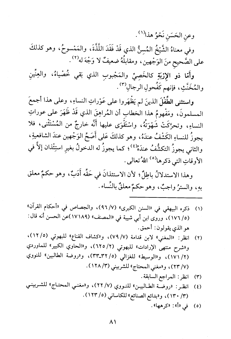 وهذا الاستدلالُ باطِلٌ؛ لأن الاستئذانَ في حَقِّه أَدَبٌ، وهو حكمٌ معلق بهِ، والسترُ واجبٌ، وهو حكمٌ معلقٌ بالنِّساء.