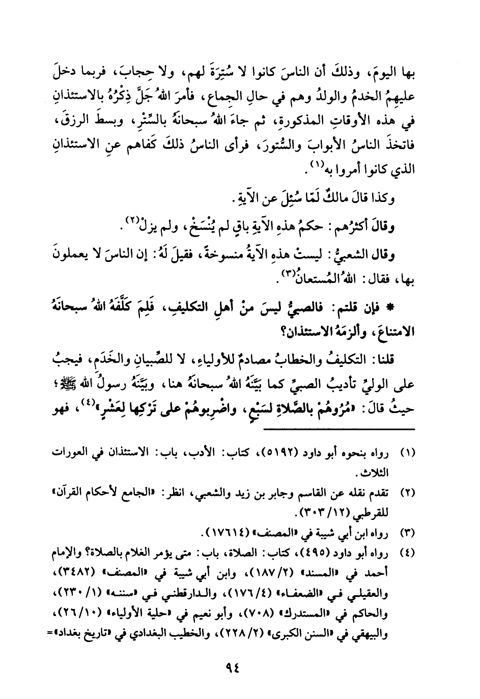 * فإن قلتم: فالصبي ليسَ منْ أهلِ التكليفِ، فَلِمَ كَلَّفَهُ اللهُ سبحانَهُ الامتناعَ، وألزمَهُ الاستئذان؟