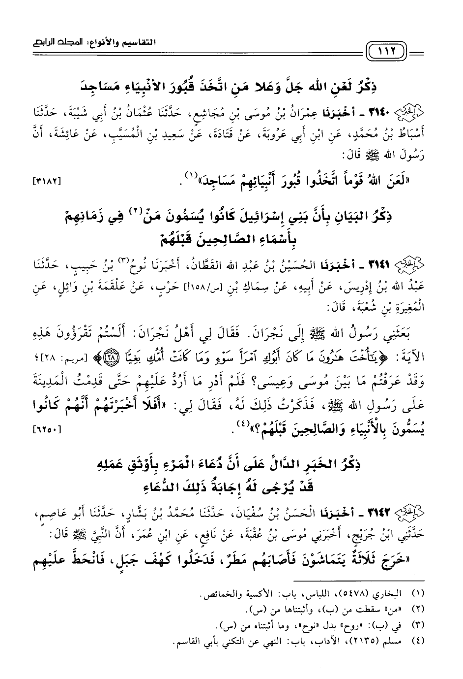 ٣١٤٠ - أَخبَرنا عِمْرَانُ بْنُ مُوسَى بْنِ مُجَاشِعٍ، حَدثنا عُثْمَانُ بْنُ أَبِي شَيْبَةَ، حَدثنا أَسْبَاطُ بْنُ مُحَمَّدٍ، عَنِ ابْنِ أَبِي عَرُوبَةَ، عَنْ قَتَادَةَ، عَنْ سَعِيدِ بْنِ الْمُسَيَّبِ، عَنْ عَائِشَةَ، أَنَّ رَسُولَ اللهِ صَلى الله عَلَيه وسَلم قَالَ: "لَعَنَ اللهُ قَوْمًا اتَّخَذُوا قُبُورَ أَنْبِيَائِهِمْ مَسَاجِدَ". [٣١٨٢]