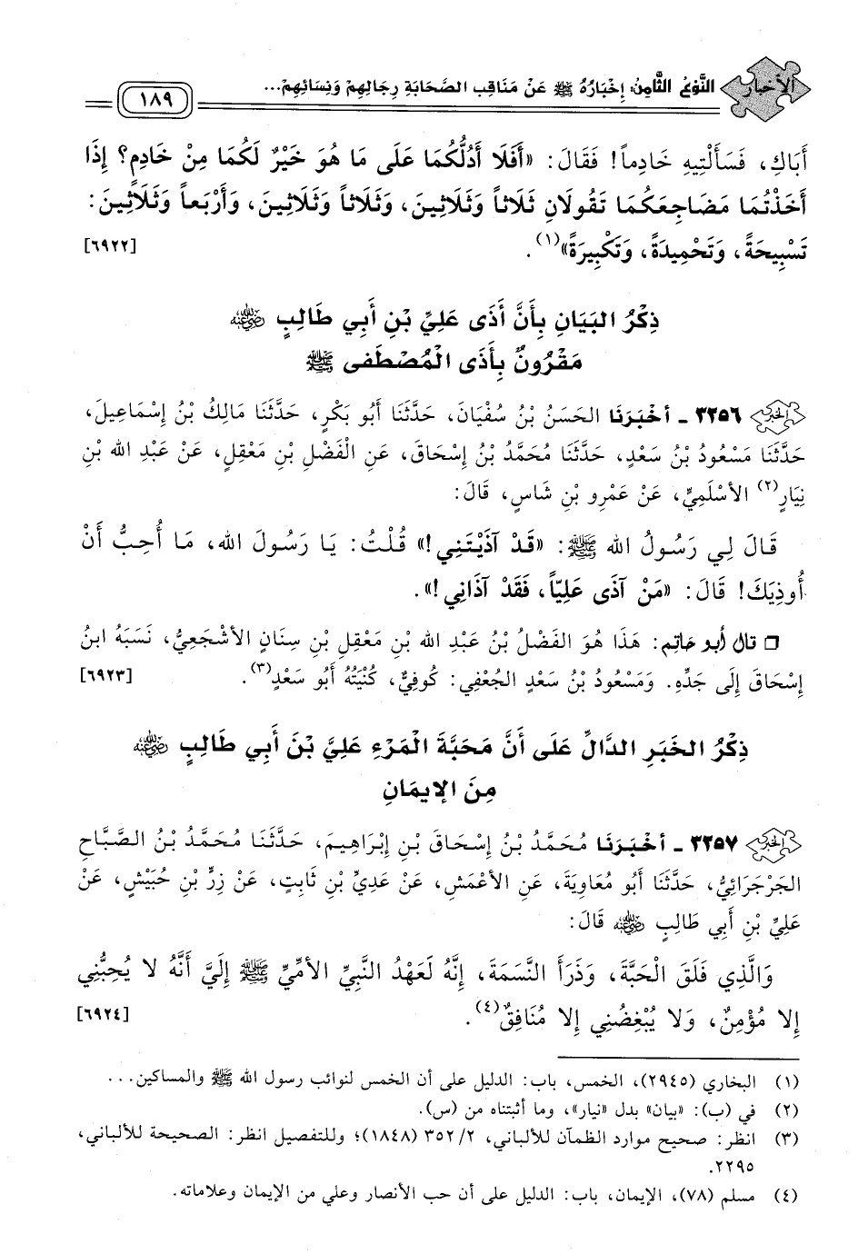 ذِكْرُ الْبَيَانِ بِأَنَّ أَذَى عَلِيِّ بْنِ أَبِي طَالِبٍ رَضِيَ اللهُ عَنْهُ مَقْرُونٌ بِأَذَى الْمُصْطَفَى صَلى الله عَلَيه وسَلم.