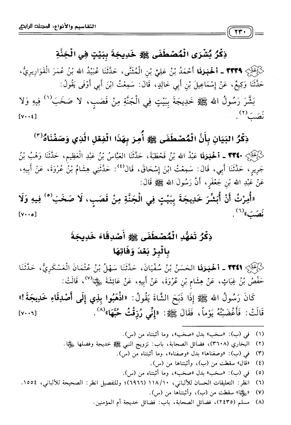 ذِكْرُ تَعَهُّدِ الْمُصْطَفَى صَلى الله عَلَيه وسَلم أَصْدِقَاءَ خَدِيجَةَ بِالْبِرِّ بَعْدَ وَفَاتِهَا.